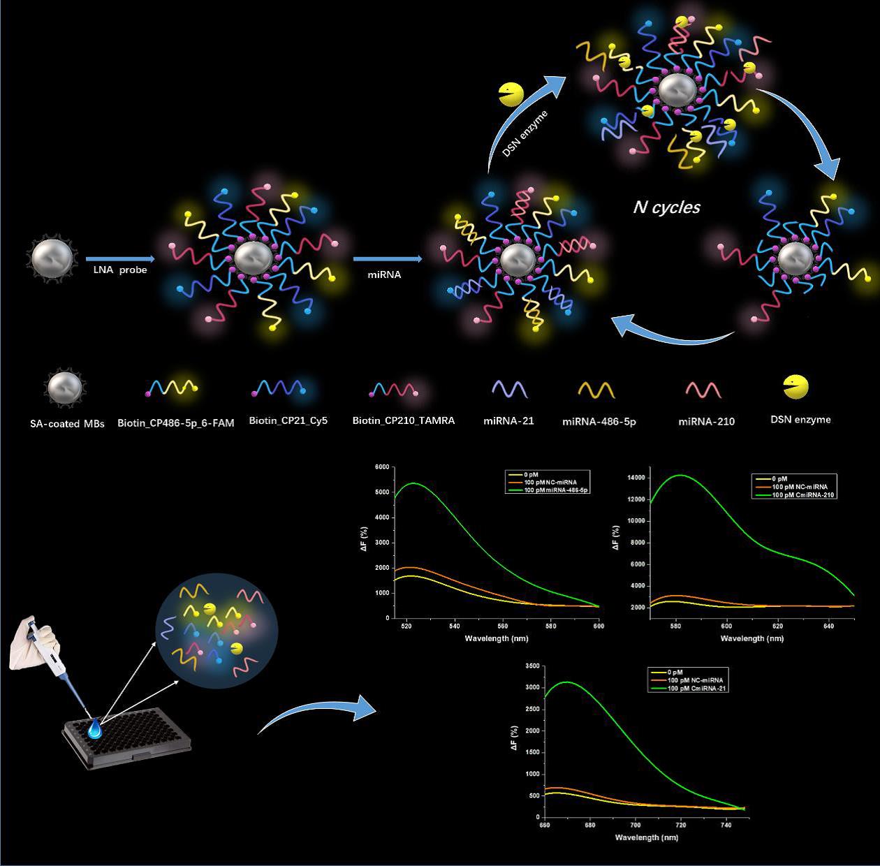 基于復(fù)合鎖核酸磁珠探針的多路復(fù)用熒光生物傳感分析方法