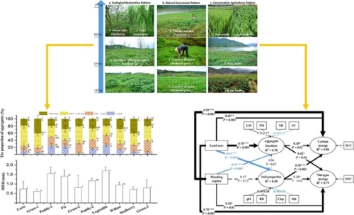 該結(jié)果初步揭示了水文干擾與人為活動對河庫岸帶土壤結(jié)構(gòu)演變與界面碳氮轉(zhuǎn)化的影響機(jī)制,對深入認(rèn)識獨特生境下土壤團(tuán)聚體形成與演變、碳氮循環(huán)過程等具有重要理論價值,也可為河庫岸帶植被恢復(fù)與生態(tài)保育,以及水土流失防治與岸線穩(wěn)固等實踐提供基礎(chǔ)支撐。系列工作發(fā)表在《Geoderma》、《Soil & Tillage Research》、《CATENA》、《Science of the Total Environment》、《土壤學(xué)報》、《水土保持學(xué)報》、《長江流域資源與環(huán)境》等國內(nèi)外相關(guān)研究領(lǐng)域的經(jīng)典刊物。
