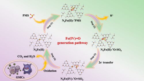 近日,中國科學院重慶綠色智能技術研究院(以下簡稱“重慶研究院”)生態(tài)修復與生態(tài)工程研究中心負責人陳明研究員與深圳大學陳嘉平教授合作,報道了“4 + 1”合成策略精準調控Fe SACs第一殼層配位微環(huán)境,以選擇性生成高價鐵氧化物物種(Fe(IV)=O)的工作。所制備的Fe SACs具有優(yōu)化的電子結構,促進了PMS的吸附和降低了Fe(IV)=O生成的能壘。該研究提供了一種高效、低成本、綠色和可持續(xù)的類芬頓催化技術,為水污染控制研究提供了新思路。